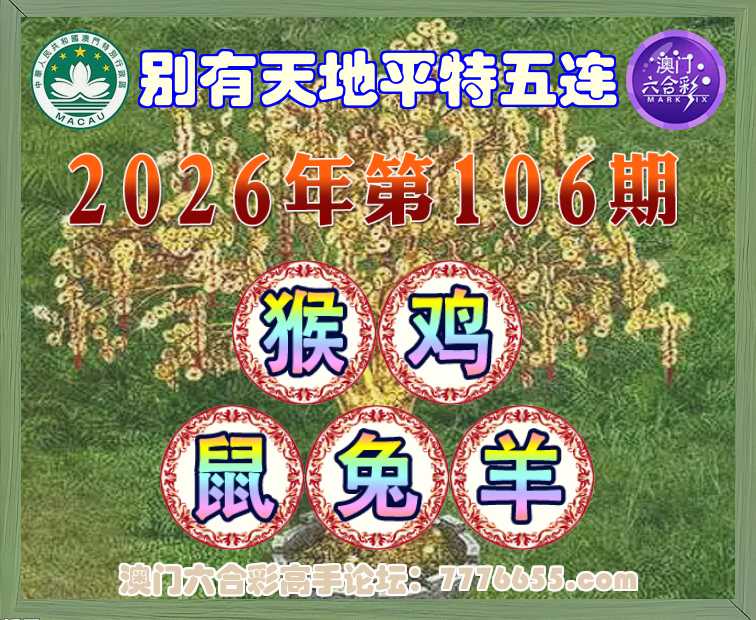 106期:《别有天地》 平特五连【猴鸡鼠兔羊】开:猴11,鸡22,鼠31,兔40,羊48