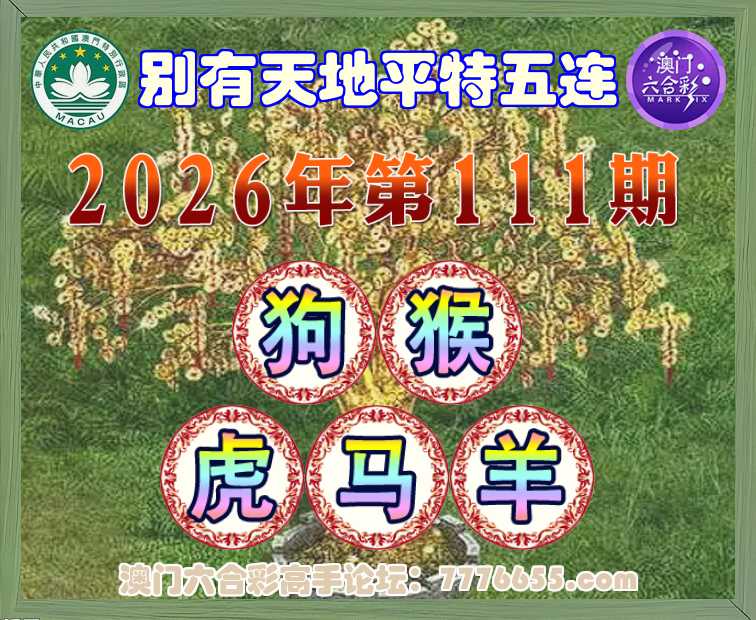 111期:《别有天地》 平特五连【狗猴虎马羊】开:狗21,猴23,虎41,马01,羊24
