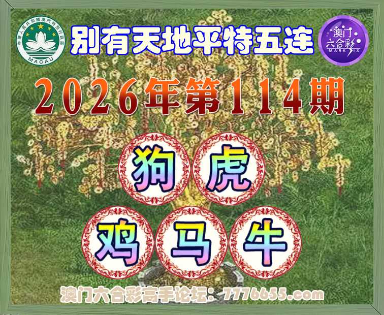 114期:《别有天地》 平特五连【狗虎鸡马牛】开:狗45,虎41,鸡10,马01,牛30