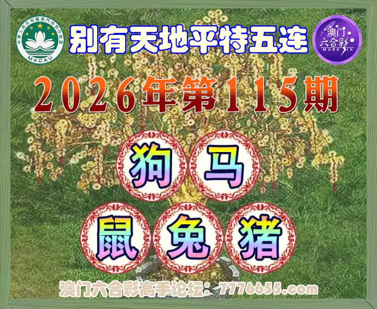 115期:《别有天地》 平特五连【狗马鼠兔猪】开:狗21,马25,鼠07,兔04,猪08