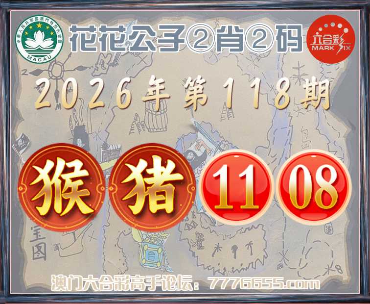 118期:【花花公子】 ②肖②码【猴】【11.08】开:猪08