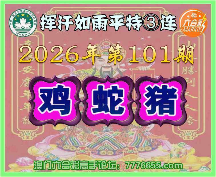 101期:〖挥汗如雨〗 平特③连【鸡蛇猪】开:鸡22,蛇02,猪08