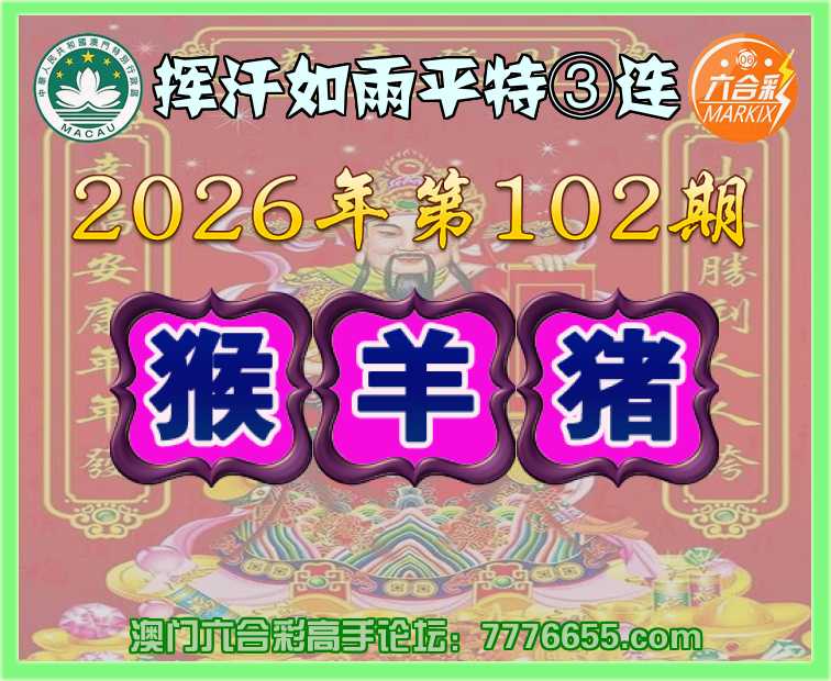 102期:〖挥汗如雨〗 平特③连【猴羊猪】开:猴47,羊36,猪20