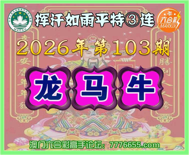 103期:〖挥汗如雨〗 平特③连【龙马牛】开:龙03,马01,牛06