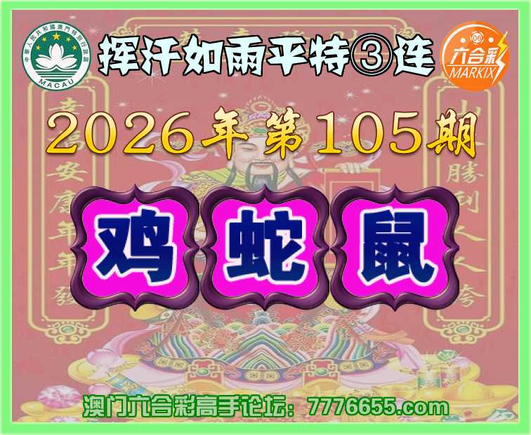 105期:〖挥汗如雨〗 平特③连【鸡蛇鼠】开:兔28