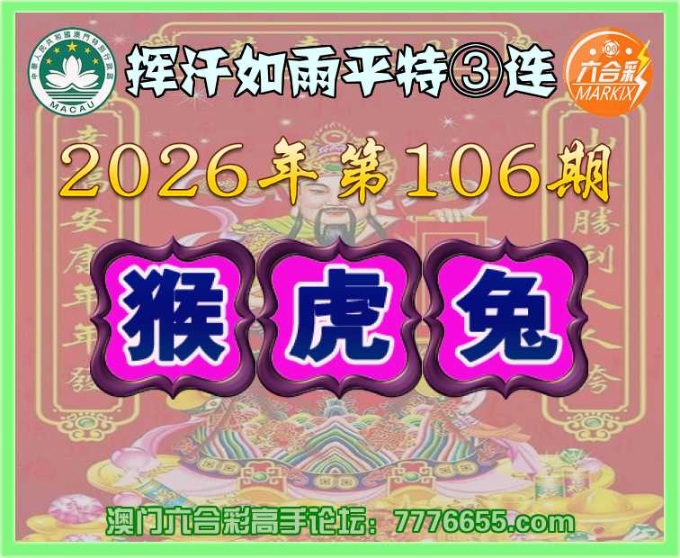 106期:〖挥汗如雨〗 平特③连【猴虎兔】开:猴11,虎05,兔40