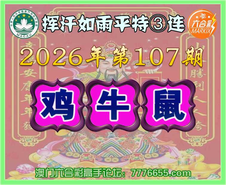 107期:〖挥汗如雨〗 平特③连【鸡牛鼠】开:鸡10,牛06,鼠43