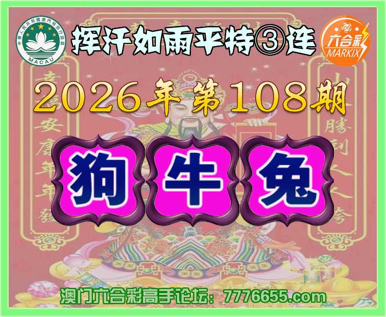 108期:〖挥汗如雨〗 平特③连【狗牛兔】开:狗45,牛06,兔40