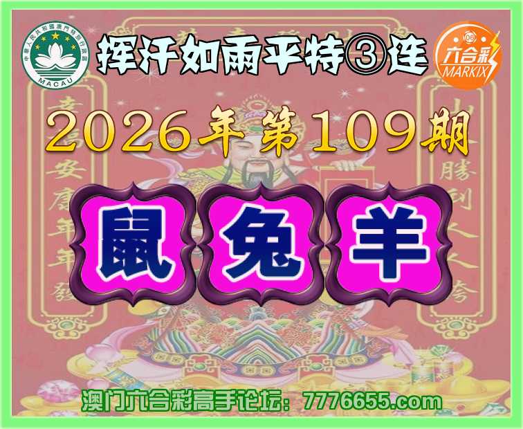 109期:〖挥汗如雨〗 平特③连【鼠兔羊】开:鼠07,兔16,羊24