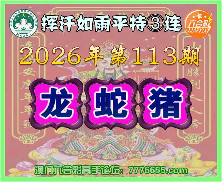 113期:〖挥汗如雨〗 平特③连【龙蛇猪】开:龙15,蛇02,猪32