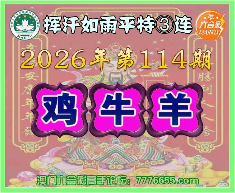 114期:〖挥汗如雨〗 平特③连【鸡牛羊】开:鸡10,牛30,羊36