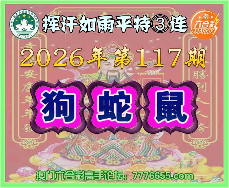 117期:〖挥汗如雨〗 平特③连【狗蛇鼠】开:狗45,蛇02,鼠19
